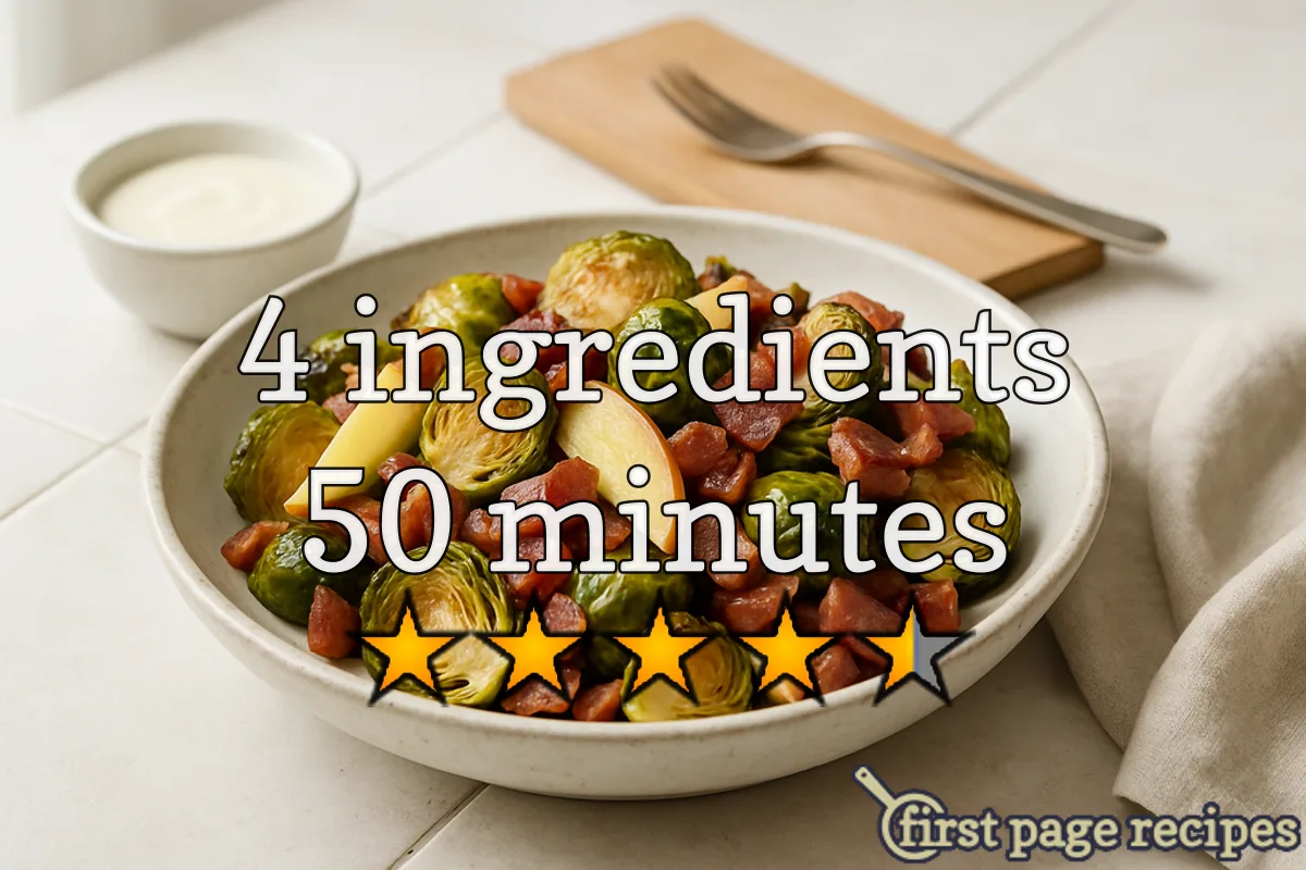 Roasted Brussels Sprouts With Apple And Bacon. Recipe on first page, not a blog.